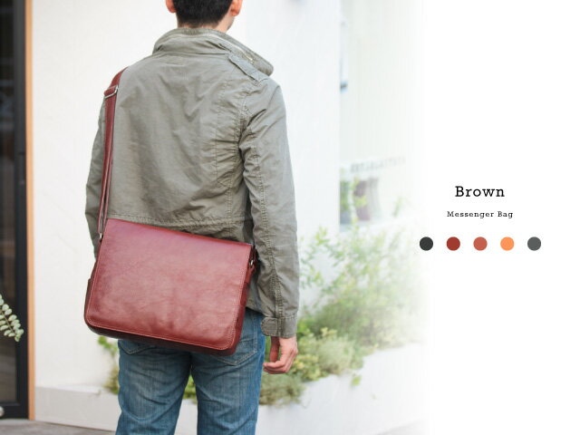 商品情報(メッセンジャーバッグ ショルダーバッグ) 商品名:Messenger bag メッセンジャーバッグ ブランド:海老名鞄 サイズ(外寸):W36×H26×D10(cm) 素材:本体/ベンガルカーフ(本牛革) 内装:綿オックス(100%) 重さ:〜約1150g 備考:A4ファイル収納可能。