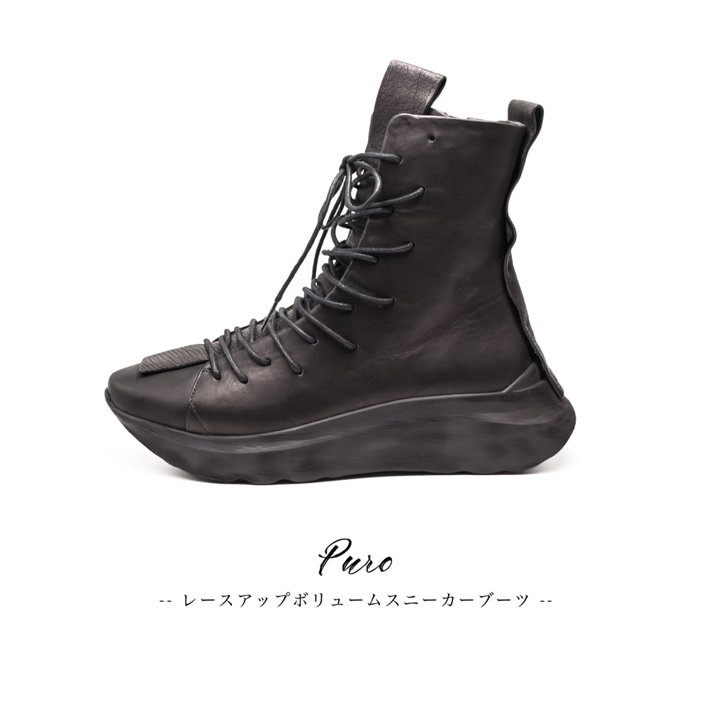 PURO[プーロ]レースアップボリュームスニーカーブーツ21S TASKER ブラック本革 / インポート / ダッドソール / 厚底 / レザーブーツ / イタリア