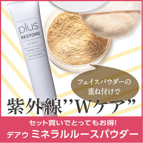 プラスリストア UVミルク(日焼け止め:SPF30 PA++)& デアウ ミネラルルースパウダー(ミネラルフェイスパウダー)【 日焼け止め / ノンケミカル / PLUSRESTORE 】赤ちゃん(ベビー)や子供、敏感肌の方にも【イチオシ】