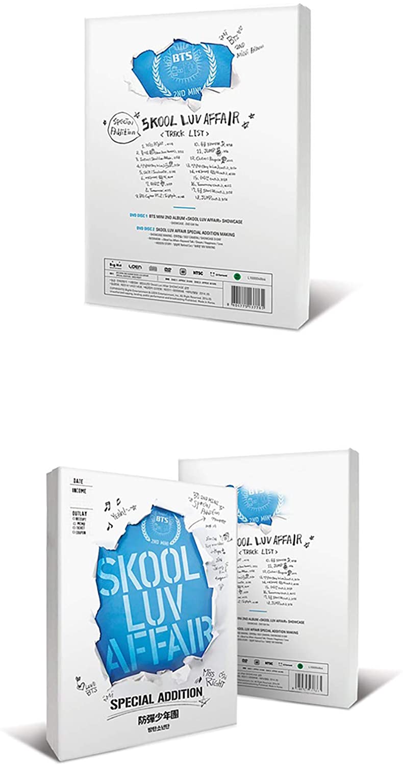 )● Track ListDISC 1 (CD)01. Miss Right02. いいです (Slow Jam Remix)03. Intro : Skool Luv Affair04. Boy In Luv05. Skit : Soulmate06. どこから来たのか07. 一日だけ08. Tomorrow09. BTS Cypher PT.2 : Triptych10. 背筋ブレーカー11. JUMP12. Outro : Propose13. Boy In Luv (Inst.)14. どこから来たのか (Inst.)15. 一日だけ(Inst.)16. Tomorrow (Inst.)17. 背筋ブレーカー (Inst.)18. JUMP (Inst.)DISC 2 (DVD)01. SHOWCASE - DVD Edit Ver.DISC 3 (DVD)01. SHOWCASE MAKING - 振り付け練習 SELF CAMERA SHOWCASE D-DAY02. INTERVIEW - 「Skool luv Affair」 Keyword Talk Dream Happiness Love03. HIDDEN STORY - 「Boy In Luv」Behind Cut 「一日だけ」MV MAKING
