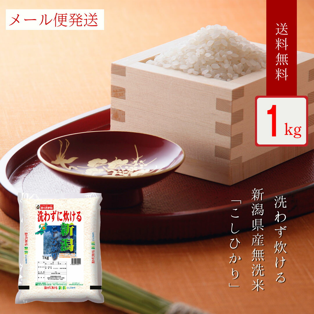 【全国送料無料】【令和2年産】無洗米 新潟県産 こしひかり 1kg <無洗米>お米 単一原料米 メール便 1000円 ポッキリ 食品 おくさま印 送料込み [お試し米1kg]