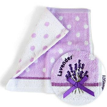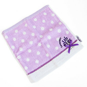 商品名ラベンダーミニタオルハンカチ 刺繍 商品説明ラベンダーの紫に水玉模様がかわいいタオルハンカチです。