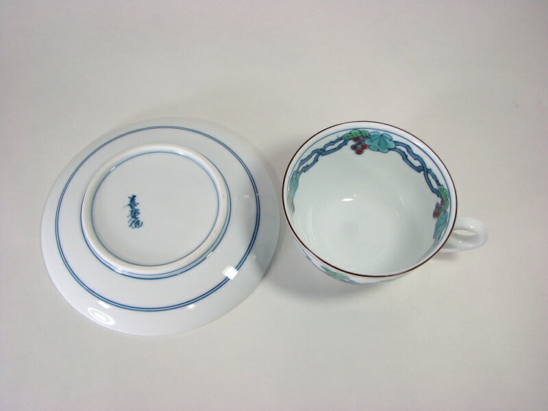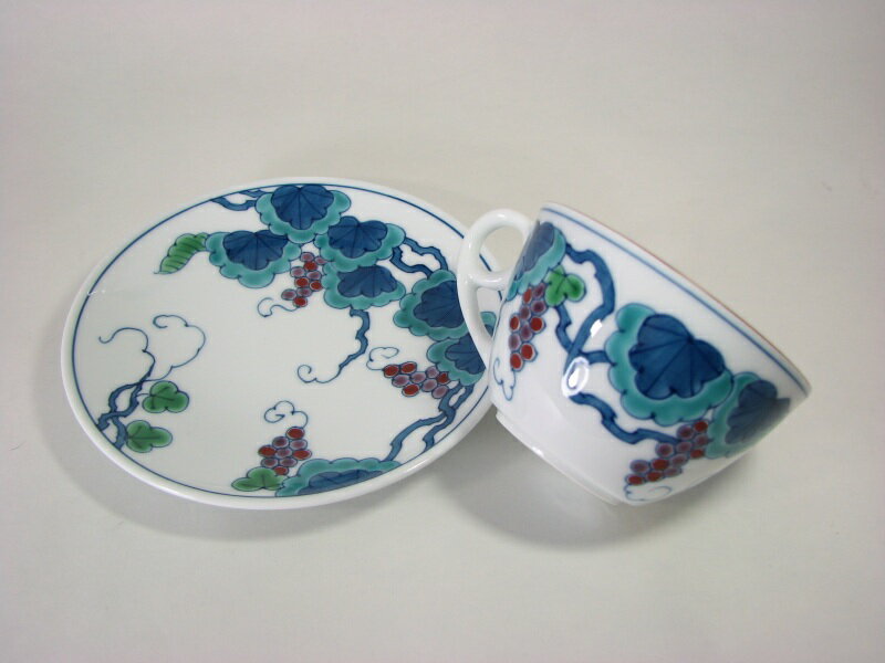 【有田焼】【舘林喜助】【舘源窯】 染錦葡萄絵 碗皿 【コーヒーカップ】
