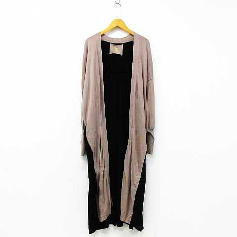 【中古】OJM ジンカンパニー レイヤード風ニット カーディガン 長袖 ロング丈 バイカラー 薄手 前開き 黒 ベージュ ONE レディース 【ベクトル 古着】 201128 ベクトルプレミアム店