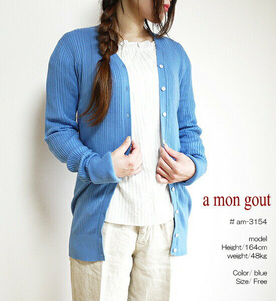 【クーポンで最大11%〜30%オフ】 a mon gout am-3154 アモング ランダムリブニット Vネック ロングカーディガン 送料無料