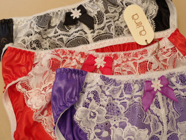 前にレースを組み合わせたストレッチサテン素材のビキニショーツです。