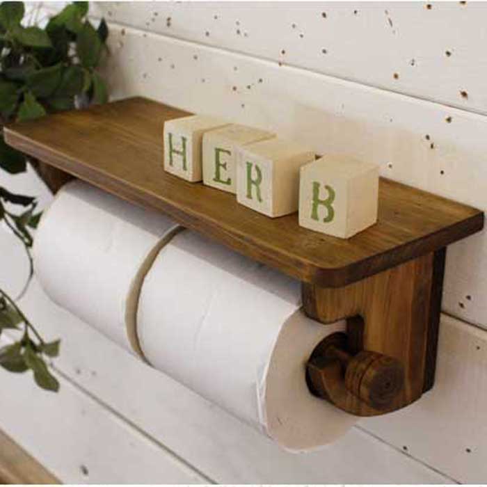 トイレットペーパーホルダー ダブル アンティークブラウン w32d12h15cm 芯あり 木製 ひのき オーダーメイド 1509042