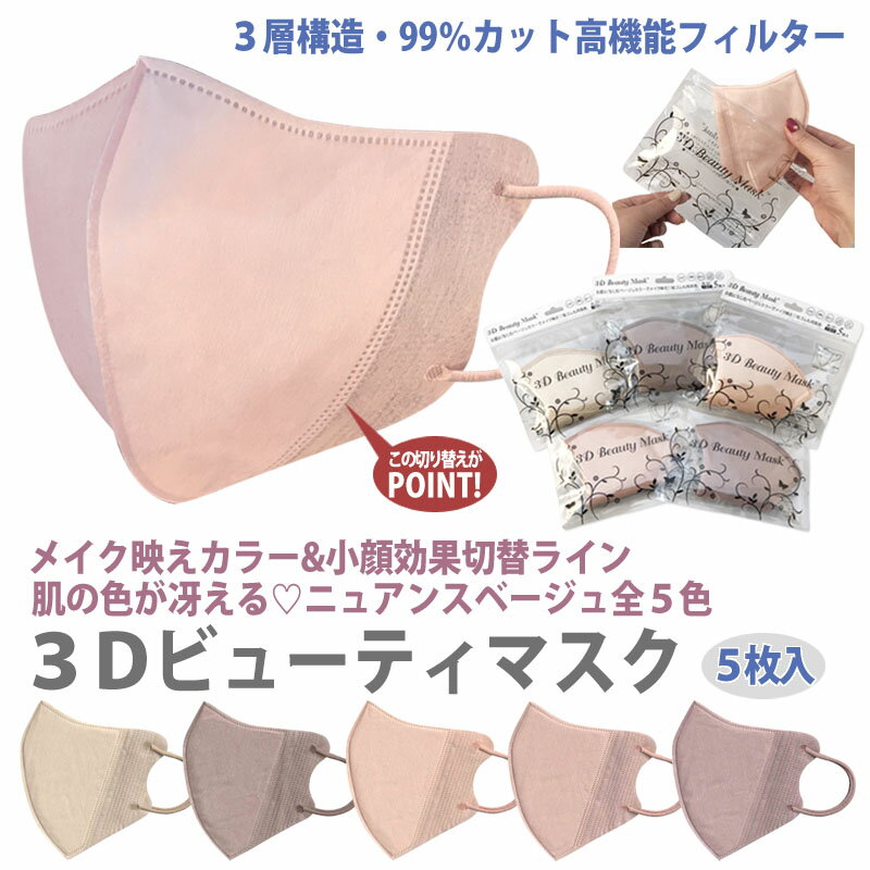 血色マスク 不織布 血色カラー マスク チークマスク 素肌マスク 小顔マスク 春マスク ベージュ 立体 3D 大人 ニュアンス おしゃれ 不織布 カラー マスク 【商品説明】 【5枚入り】3Dビューティマスク★