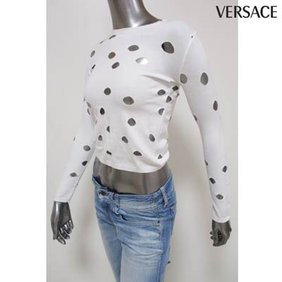 ヴェルサーチ VERSACE レディース トップス 長袖 ライトニット 穴あきデザイン・ショート丈ライトニット ホワイト FU7805 81504 001 (R54800) 【送料無料】 【smtb-TK】