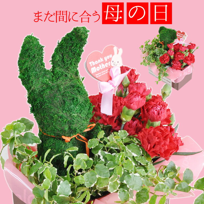母の日 2021 プレゼント 送料無料 花 カーネーション & くまとうさぎで選べる トピアリーモス セット ギフト ボックス入り 送料無料 母の日プレゼント 母の日ギフト 鉢植え 母の日カーネーション あす楽OK