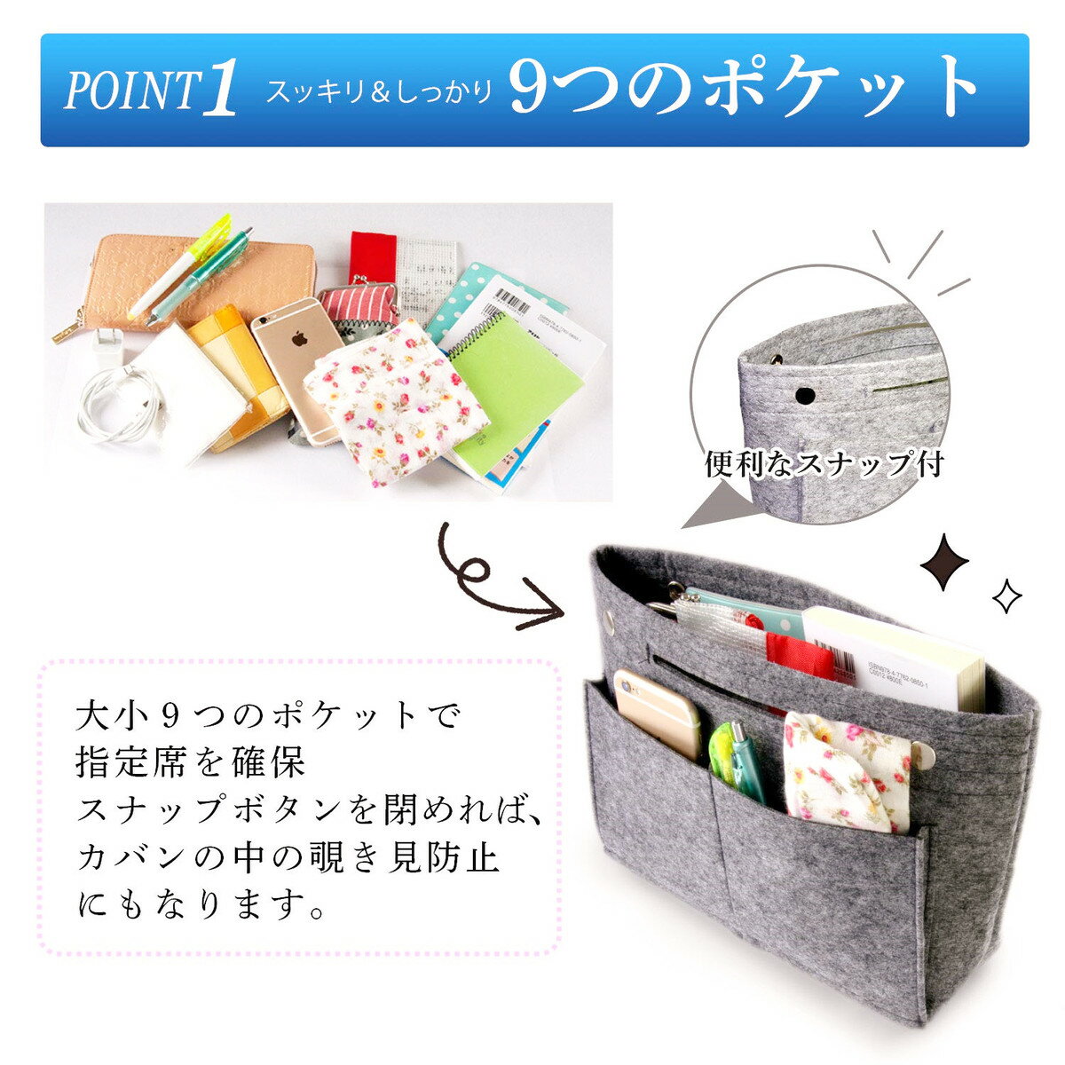 【送料無料】【14色から選べる】バッグインバッグ フェルト インナーバッグ 収納バッグ 整理 軽量 軽い 化粧ポーチ コスメ レディース バッグの中を整理整頓 人気のバッグインバッグがさらに使いやすくなって登場!バッグの中だって、身だしなみ。