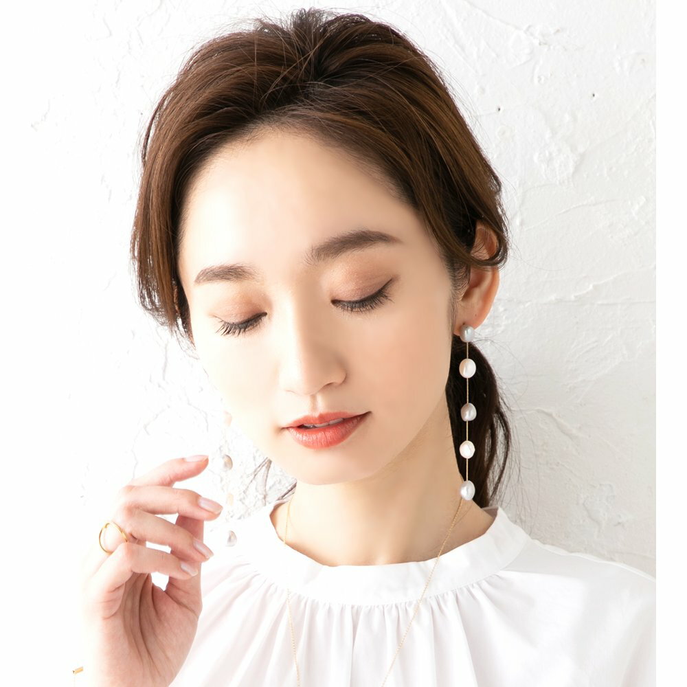 【GW限定!クーポン配布中×ゆうパケット送料無料】ピアス チタンポスト 低アレルギー レディース ブランド 揺れる 淡水パール 5連 五連 大人カジュアル 大人 上品 エレガント 華奢 シンプル フェミニン ホワイト グレー 母の日