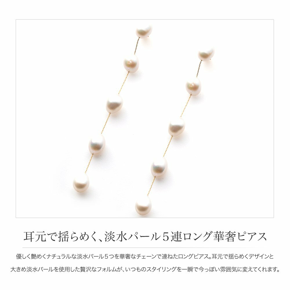 【ゆうパケット送料無料】耳元で揺らめく、淡水パール5連ロング華奢ピアス サイズ モチーフの大きさ 10.0cm×1.0cm×1.0cm 重さ 片方 5.5g 素材 本体:合金 淡水パール ポスト:チタン ※低アレルギー素材です。