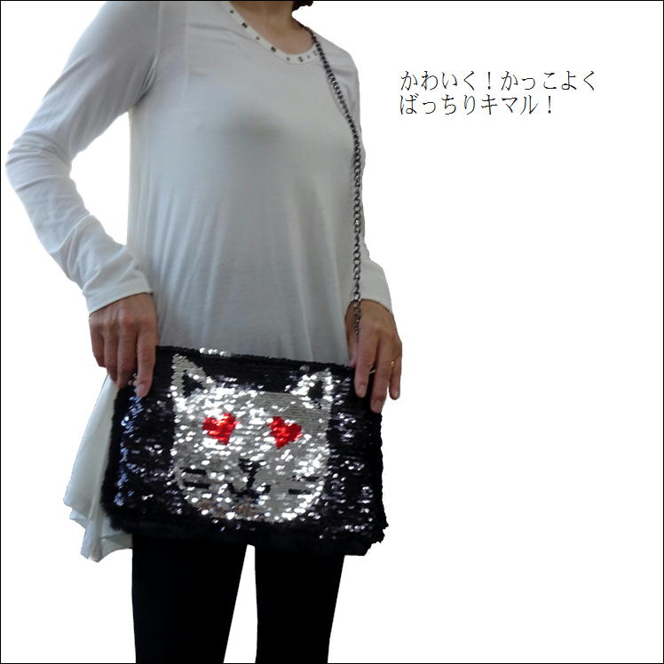 スパンコール 手でバッグの表面を撫でると・・・あら不思議 絵柄がチェンジできます! そのときの気分に合わせて 絵柄をチェンジ! 裏面には ふわっふわっのファーが付いています 寒い冬でもオシャレにゴージャスに♪