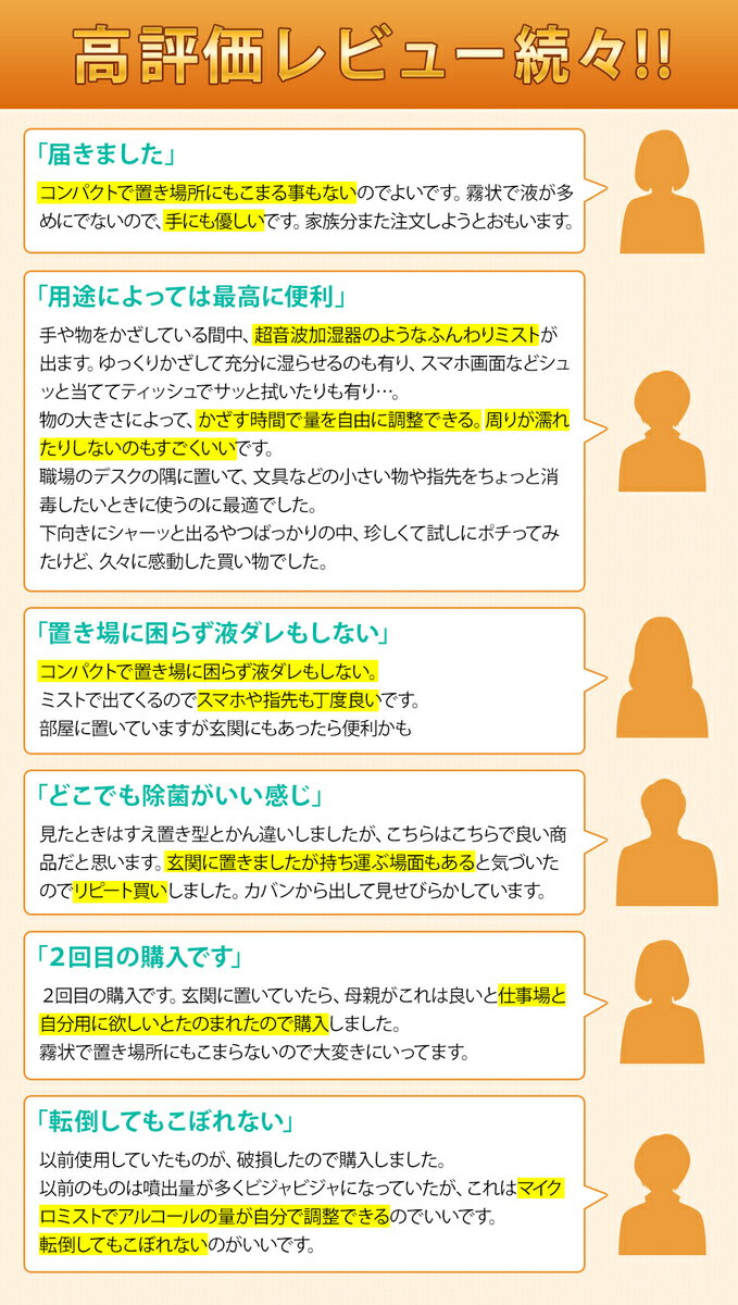 ●アルコールスプレー付近では、喫煙または火等使用せず、火器に注意してください。