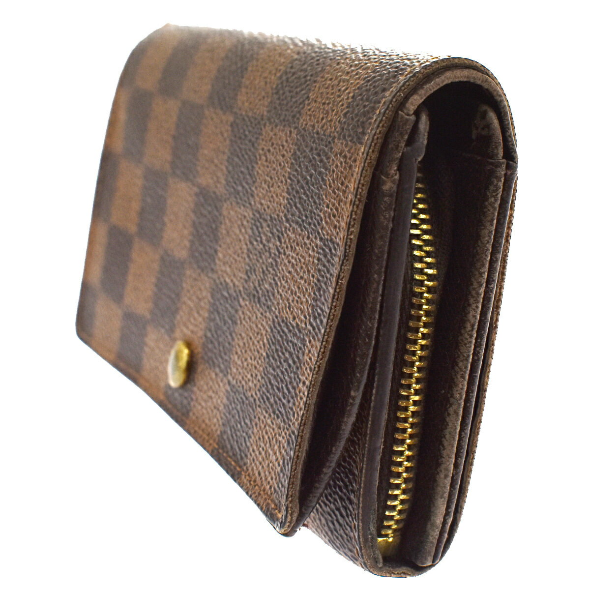 【中古】 ルイ・ヴィトン(Louis Vuitton) ダミエ ポルトフォイユ トレゾール N61736 レザー,PVC 中財布(二つ折り) エベヌ 09GC798
