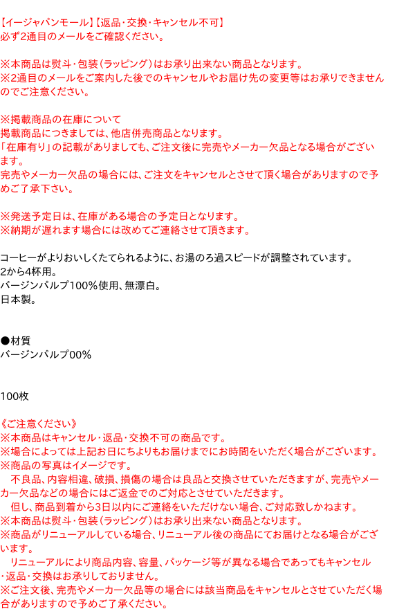 大和 コーヒーフィルター 100枚 ×112個 はコチラ >>【イージャパンショッピングモール】内のみのお買い物は、送料一律でどれだけ買っても同梱する事が出来ます。