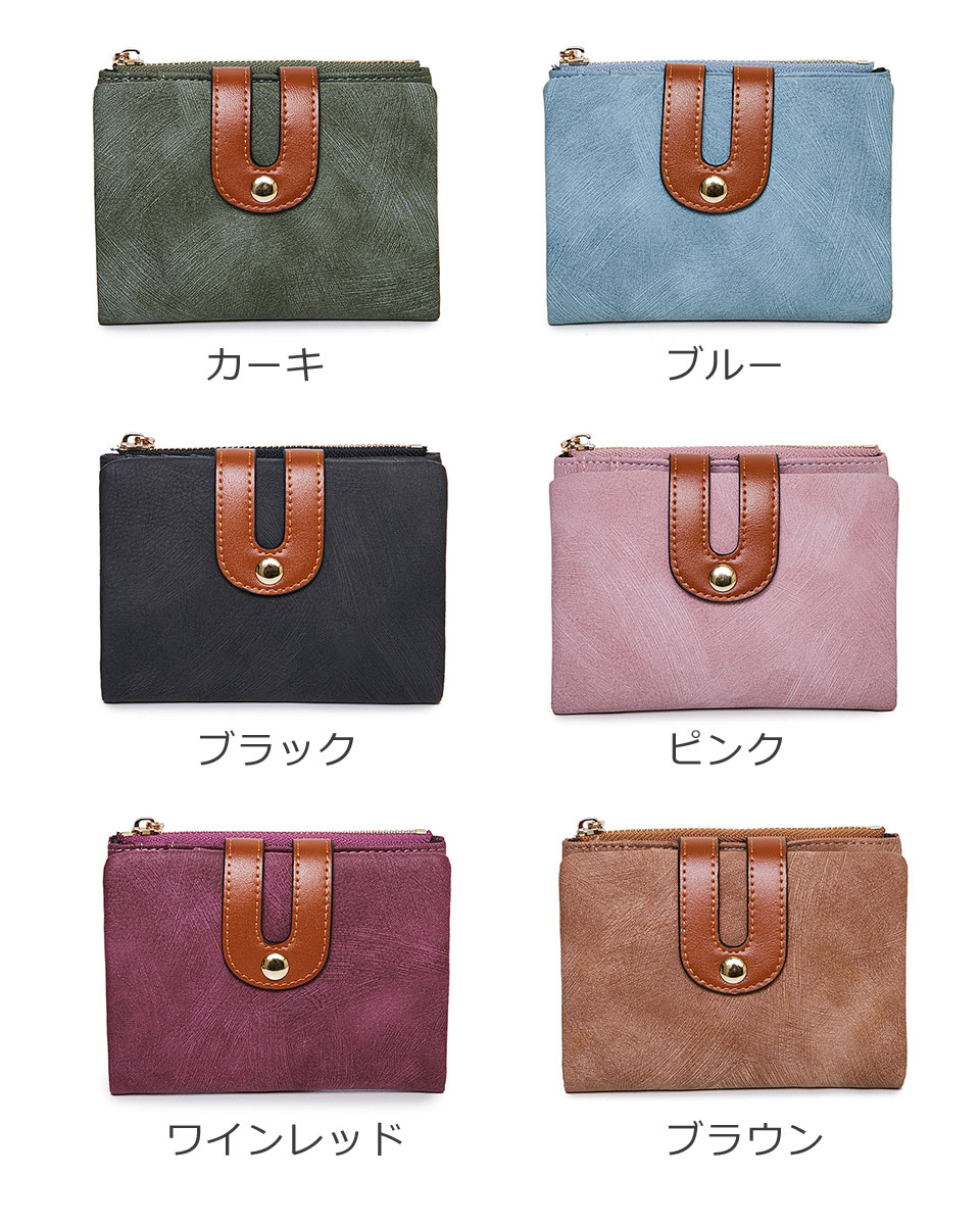 財布 レディース 二つ折り 小銭入れ おしゃれ カードポケット 大容量 軽量 コンパクト 定期券入れ パスケース カードホルダー カード入れ コインケース ファスナー PU マットカラー カーキ ブラック ブルー ピンク ワインレッド ブラウン y4