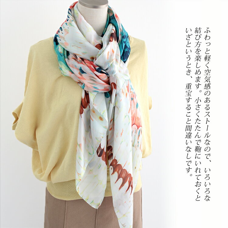 ふわっと軽く空気感のあるストールなので、いろいろな結び方を楽しめます。