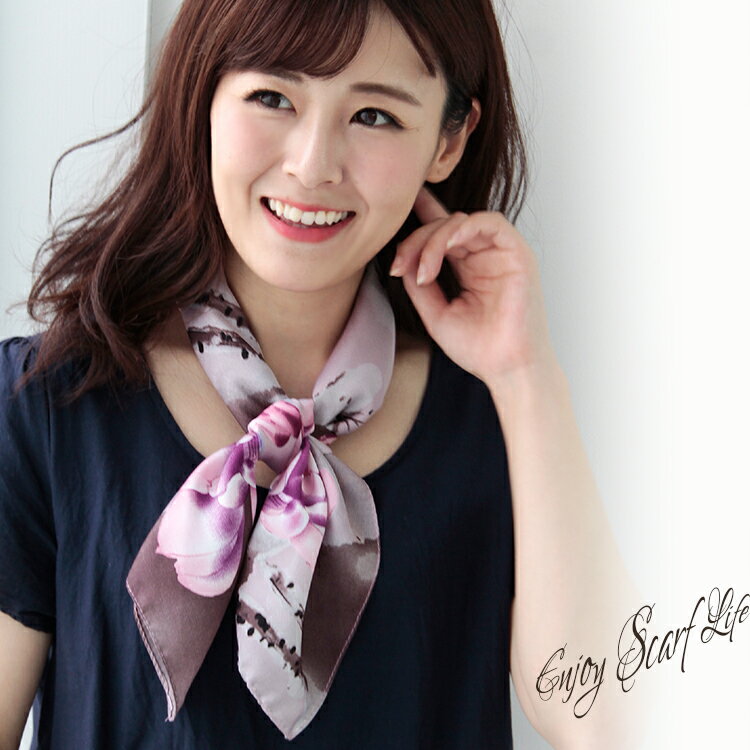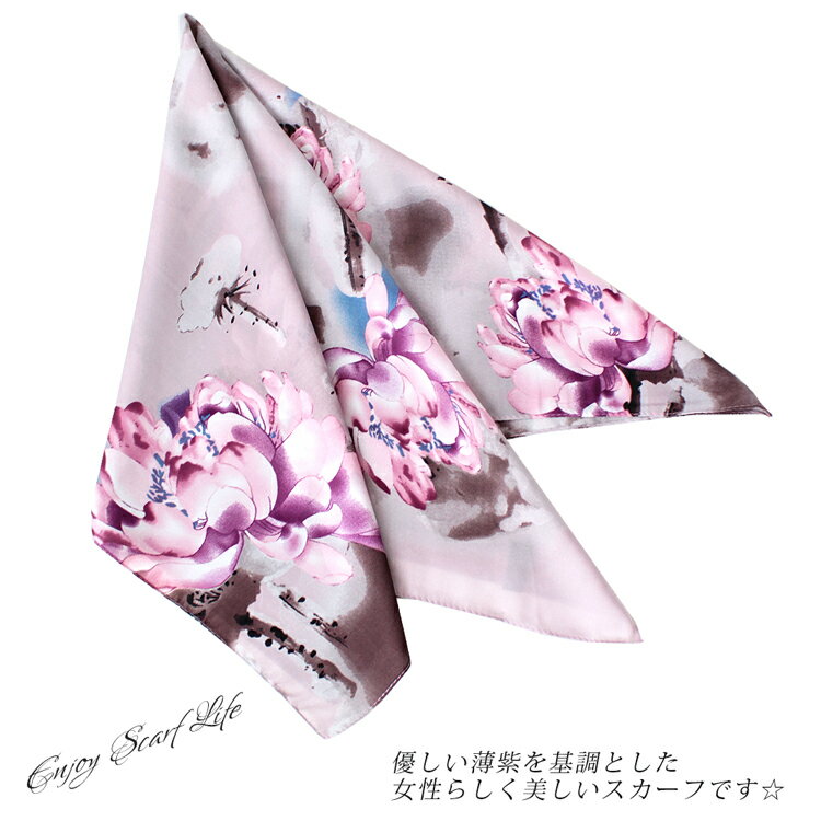 優しい薄紫に大きなピンクの花が描かれた色合いの美しいスカーフです☆