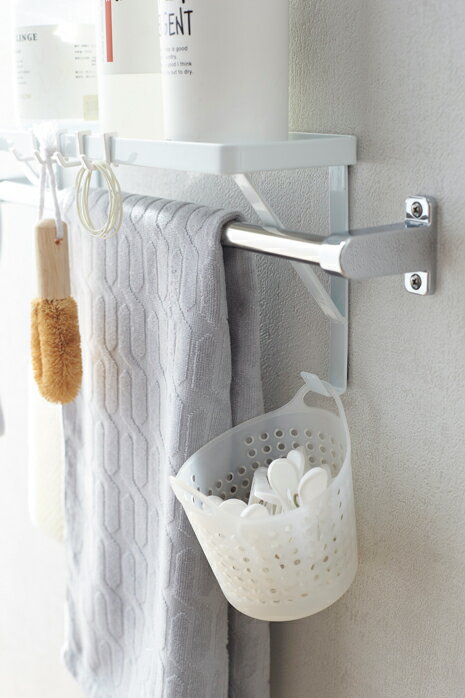 タオル掛けの上のスペースを有効利用! タオルバーに差し込むだけで簡単に設置できるラックです。