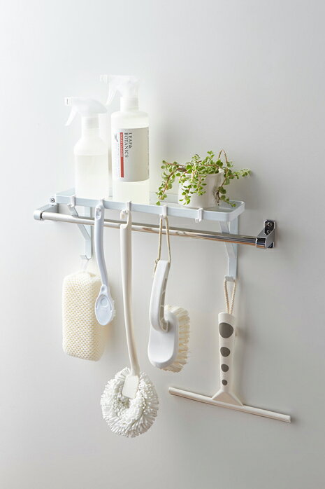 サイズ:約w33×d9×h15cm 材 質:本体・スチール(ユニクロメッキ塗装) 付属品:フック×5、緩衝材×2 耐荷重:約2kg フック1つあたり約250g(耐荷重は備え付けのタオルバーによって異なります) 取り付け可能なタオルバー内寸:幅30cm以上が必要 (タオル掛け上ラック タワー ホワイト) シェルフ バスルーム サニタリールー 収納