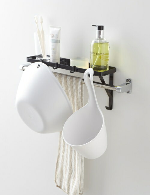 ・タオルバーに差し込むだけで簡単に設置できるシェルフ。