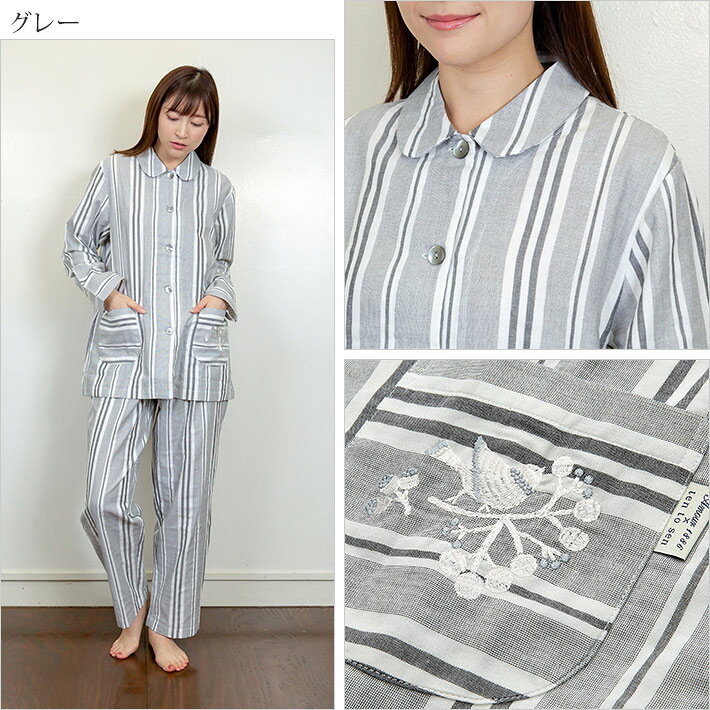 【送料無料 ランキング1位】【Amour1886×点と線】 「バードガーデン刺繍」 二重ガーゼ パジャマ レディース 春夏 長袖 前開き 綿100% かわいい おすすめ 人気 母の日 新生活 プレゼント ブランド/敬老の日