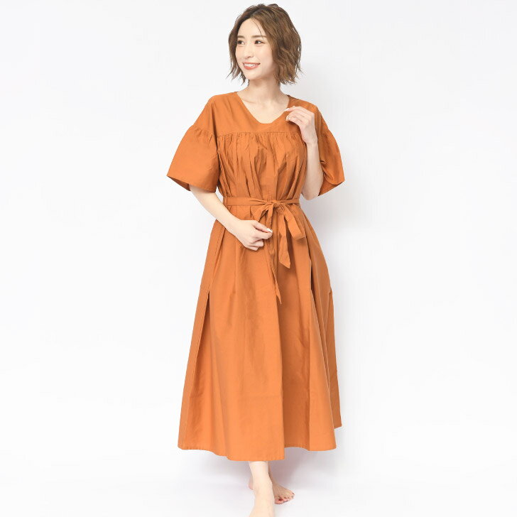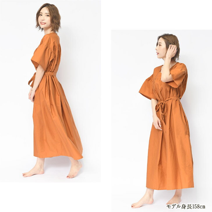 コットン ポプリン マキシ ワンピース(81882)[メール便不可]【無地 半袖 ルームウェア パジャマ 部屋着 春夏物 春物 夏物】