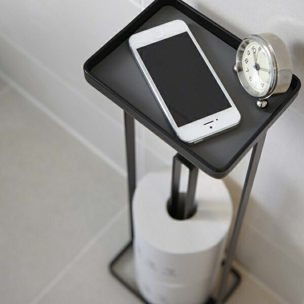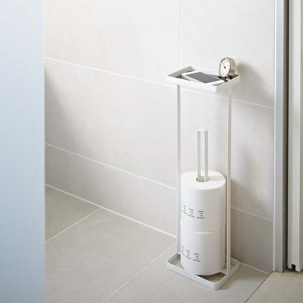 携帯電話などが置けるトレイが付いたトイレットペーパースタンド!コンパクトな設計なので、トイレに設置しても邪魔になりません。