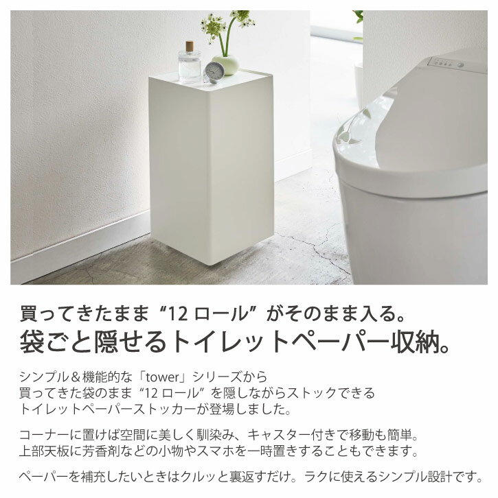 袋ごとトイレットペーパーストッカー 12ロール タワー[nyuka5上] / 【送料無料】tower トイレットペーパー 収納 12ロール 袋のまま 目隠し コーナー キャスター付き スチール シンプル