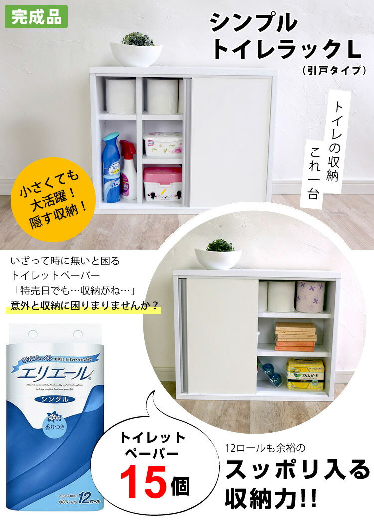 国産 トイレラック L 引戸タイプ 【完成品】 幅60cm ホワイト トイレラック スリム 引き戸 収納 トイレ ラック ペーパー(代引不可)【送料無料】
