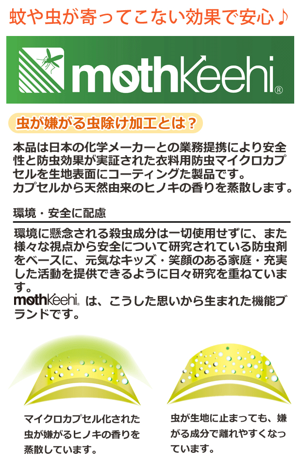商品 虫を寄せつけないモスキーヒ(mothKeehi) 虫よけハット(サファリハット/帽子) 特徴 虫よけ加工をしたキッズハット(サファリハット/帽子) 殺虫成分ではなく虫(蚊など)が嫌がる成分を生地に配合することで虫刺されを軽減します。