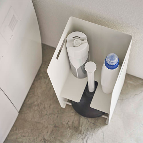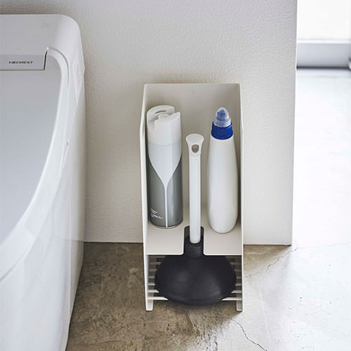→ ご利用ガイドへ置き場所に困るラバーカップと消臭スプレー、掃除用洗剤などを一括収納!スッキリ隠せるスタンドです。