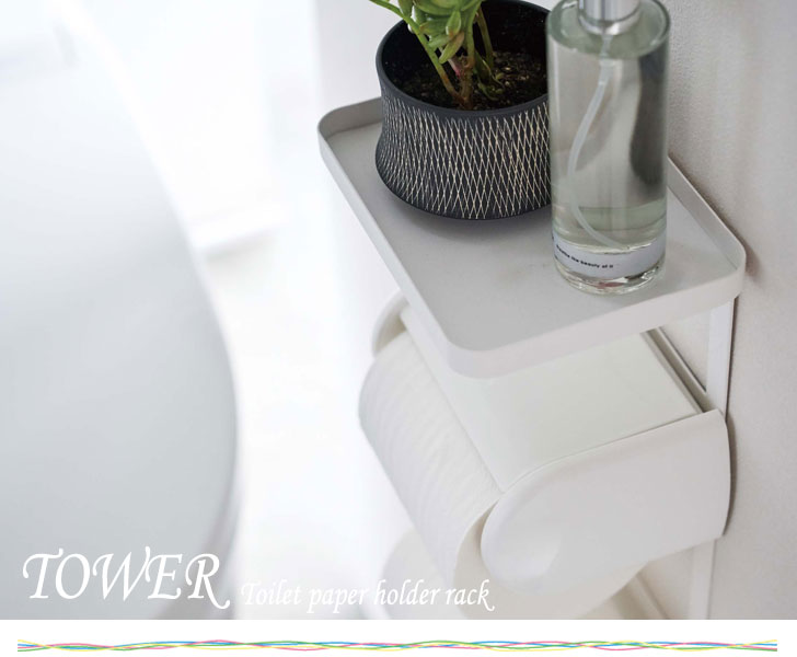 Tower タワー トイレットペーパーホルダー上ラック 2段 (トイレ収納 トイレットペーパーホルダー 収納雑貨 モダン 白 黒 ホワイト ブラック モノトーン おしゃれ)