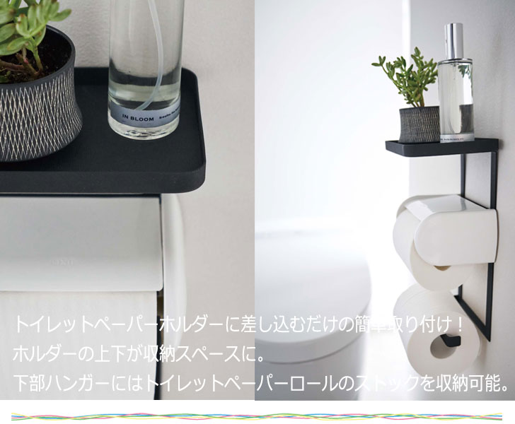 商品情報 品名 Tower タワー トイレットペーパーホルダー上ラック 2段 サイズ 約17X12.5X30cmcm/約435g 内寸: トレー内寸 約W16.5×D12cm 材質 本体:スチール(粉体塗装) マット:シリコーン 耐荷重:上部トレー:約1kg 下部ハンガー:約500g 組立 完成品 その他 トイレットペーパーホルダー本体のネジ留め穴の間隔約10.5cm以内のもの、 直径約13cm以内 幅約12cm以内の一般的なトイレットペーパーロール 説明 トイレットペーパーホルダーに差し込むだけの簡単取り付け! ホルダーの上下が収納スペースに。