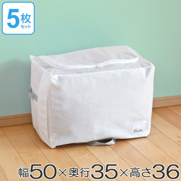 布団収納袋 シングル 掛け布団用 幅50×奥行35×高さ36cm 5枚セット 棚上 クローゼット収納 ( 送料無料 収納 布団 布団袋 収納袋 収納ケース 不織布 棚上 クローゼット 掛けふとん ふとん 毛布 タオルケット ホワイト )【3980円以上送料無料】
