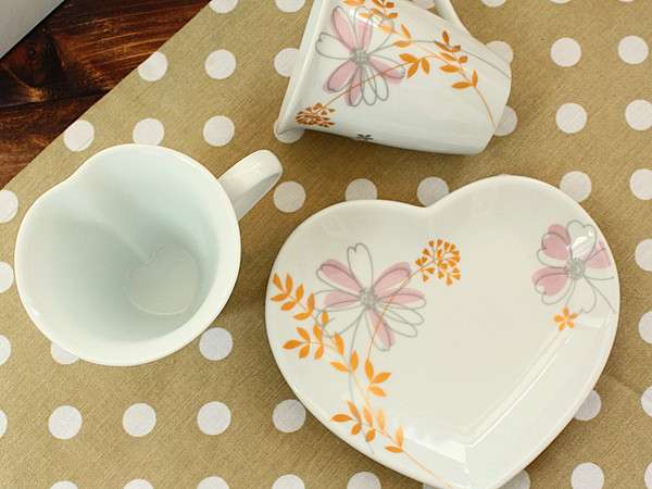 La brise ハートペアマグカップ&プレート(洋食器 カップ コーヒーカップ マグカップ お皿 プレート カフェ カフェ食器 ペア食器 ペア 箱入り プレゼント アウトレット 業務用 業務用食器 日本製)