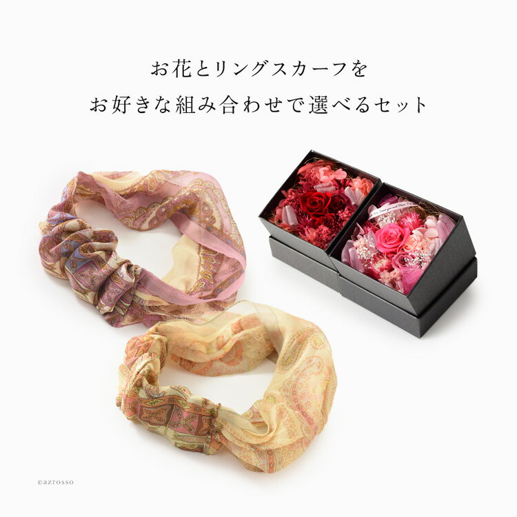 プリザーブドフラワーボックス×コラボ商品セットは他にもたくさん!こちらから 選択肢1:プリザーブドフラワー (レッド 赤 ピンク パープル 紫 ブルー 青 ホワイト 白 カーネーション ローズ バラ 薔薇 ハイドランジア アジサイ 紫陽花)選択肢2:スカーフ (シルク 100% 大判 日本製 小さい) 本当に喜ぶお母さんへの贈り物って何だろうかとシンフーライフが本気で考えた母の日セット。